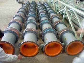 襯塑塔節加工范圍及特點: 1、 結構:各種類型的塔節、容器、反應釜、貯罐等,非標容器可按用戶圖紙加工制造。 2、 襯里材料及厚度: 襯里材料聚四氟乙烯(ptfe、f4)厚度2~3mm,襯里材料etfe(f40)厚度2~3mm,聚烯烴類樹脂(po)厚度5~12mm。